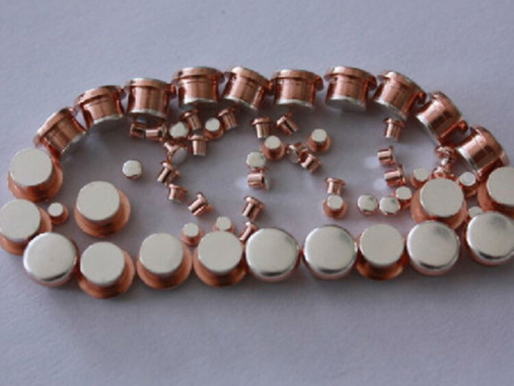 觸點(diǎn)指的是電子電器的斷開(kāi)和閉合時(shí),進(jìn)行相互分離和接觸的交點(diǎn)。銀觸點(diǎn)具有耐熱,耐電弧侵蝕及抗熔性,使用壽命長(zhǎng),導(dǎo)電電熱性好、接觸電阻低面穩(wěn)定等優(yōu)點(diǎn)。觸點(diǎn)是各種電子元器件中常用的元件,它體積雖小,但對(duì)其性能的要求很高,復(fù)合觸點(diǎn)應(yīng)用范圍廣泛且常常用到貴金屬材料一般采用手工鉚接和自動(dòng)鉚接。目前市場(chǎng)上是用純銀的復(fù)合觸點(diǎn),但純銀強(qiáng)度低、硬度低、抗熔焊性及耐電弧燒損性能低,且用量大、價(jià)格昂貴,生產(chǎn)成本高,只能應(yīng)用在無(wú)線電、通訊用微型開(kāi)關(guān)及小電流電器等領(lǐng)域。