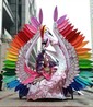 假面,高達(dá)六英尺,直徑四英尺,設(shè)計(jì)理念上融合了世界五大洲的面具文化,并擁有蝴蝶翅膀般燦爛的色彩。她的演出也和服裝相得益彰,火一般的熱情與激烈,充滿著魅惑和妖嬈。