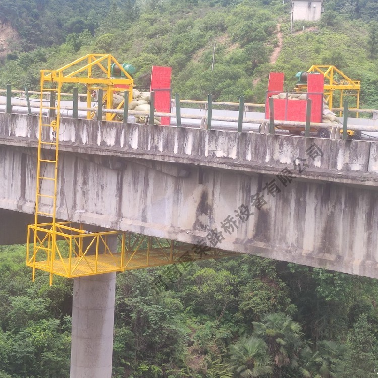 橋梁底部(如箱梁底板、T 梁梁肋、橋墩側(cè)面、支座區(qū)域等)是常規(guī)腳手架難以覆蓋的臨空區(qū)域,吊籃通過懸掛裝置固定于橋梁上部結(jié)構(gòu)(如梁體、墩頂),為工人、設(shè)備及材料提供穩(wěn)定的操作平面,滿足梁底檢查、裂縫修補、涂裝、支座更換、加固植筋等作業(yè)需求。