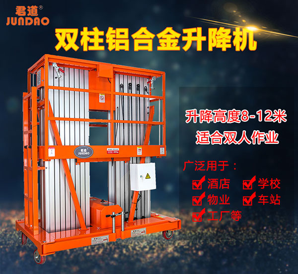 說(shuō)液壓升降機(jī)也叫升降平臺(tái)或者高空作業(yè)梯等等都是該設(shè)備的俗稱,我們先來(lái)了解一下它的構(gòu)造,鋁合金升降機(jī)主要分升降柱、底盤(pán)、控制裝置及液壓聯(lián)動(dòng)系統(tǒng)組成,升降柱采用鋁合金矩形型材,鋁合金的密度決定了其強(qiáng)度,強(qiáng)度密度高的型材其承載力就高,君道鋁合金高空作業(yè)升降機(jī)采用高密度標(biāo)準(zhǔn)的型材了升降機(jī)的承載強(qiáng)度,升降機(jī)的底盤(pán)采用矩形高碳鋼材焊接堅(jiān)固耐用提供支撐安全,控制部分采用平臺(tái)、地面兩套按鈕以平臺(tái)控制的安全理念升降平臺(tái)控制先河,液壓聯(lián)動(dòng)系統(tǒng)采用命無(wú)振動(dòng)式液壓一體式泵站,加厚四鏈條是平穩(wěn)升降的