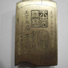 值得一提的是,墨盒右上方還刻有款識,為“寅生刻”三字,顯然是想墨盒為清末民國刻銅名家陳寅生的作品,晚清、民國時期,大量文人名士參與銅墨盒的創(chuàng)作,把承載他們志向喜好的書畫作品濃縮于墨盒之上,使之從單一的文房用具發(fā)展成具有刻銅藝術(shù)價值的文化佳品,而具備較高文化素養(yǎng)的陳寅生就是這一期間的刻銅界人物,甚至連煙膏盒、盒、鎮(zhèn)尺、酒壺等銅器物上也署他的名字,但該墨盒字體潦草粗率、散漫無章,書刻水平、鐫刻技藝與陳寅生親手所刻墨盒無法相提并論,應(yīng)該是當時的刻銅藝人仿刻,因為落有陳寅生款的墨盒要比一般墨盒賣。對比墨盒圖文看,墨盒上的款字遠沒有畫作好,即便不刻款字亦無傷大雅,字畫一起總有別扭做作之感,但好在其不是現(xiàn)代仿品,價值有限,仍不失珍藏把玩的意義。