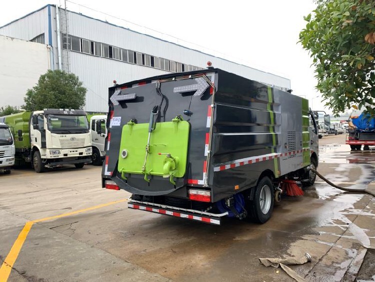 洗掃車整車外型采用折筋結(jié)構(gòu),有效減輕自重,增強垃圾箱的強度和剛度;整車采用兩節(jié)式,前置連接式水箱,結(jié)構(gòu)合理,可拆卸,方便維修。后門關(guān)閉鎖緊機構(gòu)采用插銷式,穩(wěn)定性好,密閉性好。副發(fā)動機帶車用離心式離合器,當(dāng)轉(zhuǎn)速達(dá)到1100轉(zhuǎn),離合器帶動風(fēng)機和高壓水泵工作,有效避免風(fēng)機、高壓水泵、發(fā)動機的損壞。