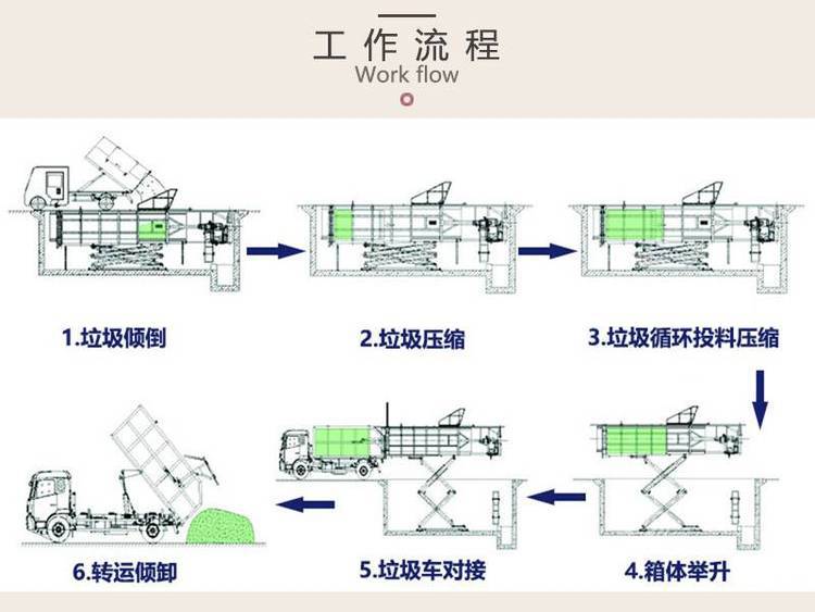 水平式轉(zhuǎn)運站垃圾壓縮箱采用水平壓縮方式對生活垃圾進行壓縮處理,我公司有三種型號的地埋式垃圾壓縮站,分別是6立方、8立方和10立方。其中6立方地埋式垃圾站每天處理量可達(dá)40-60噸(按8小時工作制度計算,正常情況下壓滿一箱生活垃圾20-30分鐘左右),單次壓縮一塊垃圾為6立方;8立方地埋式垃圾站每天處理量在50-70噸(按8小時工作制度計算),單次壓縮一塊垃圾為8立方;10立方地埋式垃圾站每天處理量在60-80噸,(按8小時工作制度計算),單次壓縮一塊垃圾為10立方;這三款地埋式垃圾站其實主要的區(qū)別就在垃圾壓縮箱體的容積大小;也可以根據(jù)客戶的需求來定制型號。