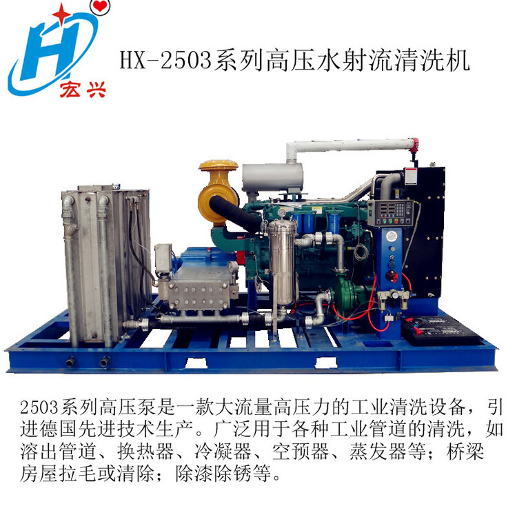 HX-2503系列高壓泵是一款大流量高壓力的工業(yè)清洗設(shè)備,引進德國技術(shù)導(dǎo)入生產(chǎn),廣泛應(yīng)用于各種管道的清洗,比如溶出管道、換熱器、冷凝器、凝汽器、蒸發(fā)器、預(yù)熱器等