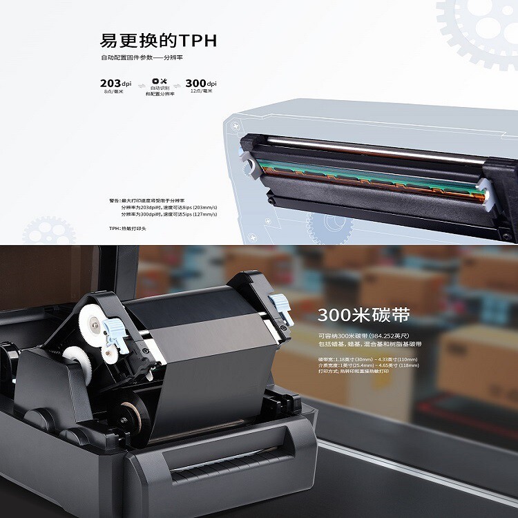 大紙倉設計。漢印標簽打印機超大紙倉設計,支持更大的標簽紙卷裝入,使得打印連續(xù)和,減少了換紙頻率。