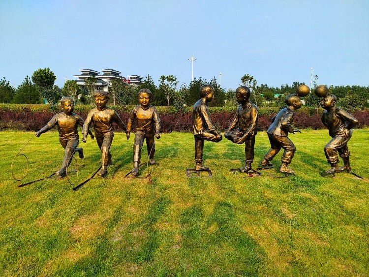 童趣雕塑通過運用夸張和抽象的藝術(shù)手法,巧妙地將孩子們玩滾鐵環(huán)時的動作和表情捕捉并呈現(xiàn),使得這些雕塑作品栩栩如生,充滿了生命力和動感。這些作品不僅是對滾鐵環(huán)這一經(jīng)典童年游戲的致敬,更是對那段無憂無慮、充滿歡聲笑語的童年時光的深情回憶。滾鐵環(huán),這個簡單而有趣的傳統(tǒng)游戲,曾經(jīng)是許多80后童年的美好記憶。每當(dāng)回想起那段時光,那熟悉的旋轉(zhuǎn)聲、追逐的身影以及和小伙伴們一起分享的快樂,都仿佛歷歷在目。這種造型的雕塑作品,讓人們仿佛穿越時空,重新回到了那個純真的年代,重溫那段快樂的時光。這些雕塑作品不僅具有的觀賞價值,更是富有深刻的文化內(nèi)涵和時代意義。它們不僅是藝術(shù)家們對童年時光的懷念和追憶,更是對傳統(tǒng)文化的傳承和弘揚。通過這些作品,我們能夠感受到那個時代的特氛圍和人們的純真情感,也能夠更加珍惜和感恩現(xiàn)在的生活。