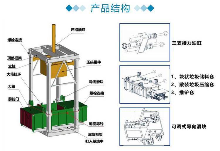 垃圾站壓縮箱容積8立方 垂直式轉(zhuǎn)運站垃圾壓縮設(shè)備 可定制?