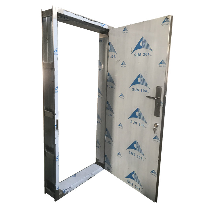 產(chǎn)品門扇結(jié)構(gòu)由外至內(nèi)依次為:1.2mm鋼板鋼制骨架(壁厚1.5mm)+1.5mm鋼板。填充物為珍珠巖棉,內(nèi)嵌有鋼筋網(wǎng)。鉸鏈側(cè)有3個明鉸鏈和3個固定栓,固定栓直徑為17.5mm,有效伸出長度12mm,門扇開啟側(cè)有3個活動鎖栓,鎖栓橫截面積為18mm*10mm,有效伸出長度20mm,上、下各有1個活動門栓,活動門栓直徑為14mm,有效伸出長度15mm。門上安裝FDS-B-888-12型B級機械防盜鎖1把。鎖具安裝部位有3mm加強鋼板防護。廣州天河保密室防盜門,防盜門廠家GB17565-2007廣州天河保密室防盜門,防盜門廠家GB17565-2007