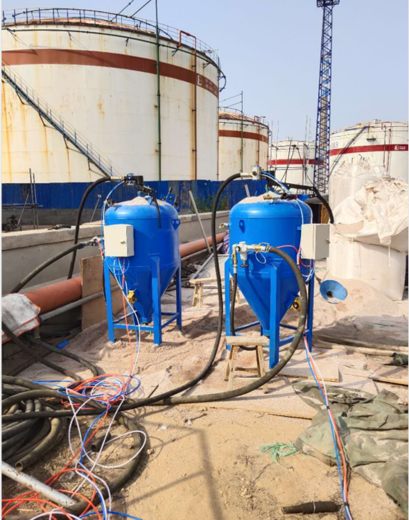8.操作完成后,按下遙控關(guān)閉開(kāi)關(guān),自動(dòng)卸壓排氣,回收的砂料自動(dòng)落入砂罐中,以便下次工作時(shí)繼續(xù)使用。如連續(xù)使用需停機(jī)稍等10-30秒使磨料全部自動(dòng)落到砂罐內(nèi)。