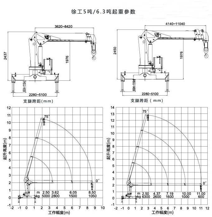 重汽4.3米貨箱隨車吊吊機(jī)常配4噸,5噸,6.3噸,吊機(jī)可選三一,徐工,石煤等,吊臂樣式多選擇直臂吊機(jī),與折疊臂吊機(jī)相比,吊臂長(zhǎng),作業(yè)范圍廣,適合寬闊的環(huán)境下作業(yè),以徐工5噸四節(jié)臂吊機(jī)為例(如下圖所示),吊機(jī)型號(hào):KSQS125-4,標(biāo)配四節(jié)臂,工作半徑11米,舉升高度12米,遠(yuǎn)可吊0.4噸,吊臂通過(guò)下操作控制吊臂動(dòng)作,左右兩邊均可操作,吊臂頂部配有工作燈,滿足夜晚作業(yè)的需要,在吊臂上配有起重曲線圖,通過(guò)起重參數(shù)適度調(diào)整吊臂長(zhǎng)度和仰角,起吊合適噸位的貨物。