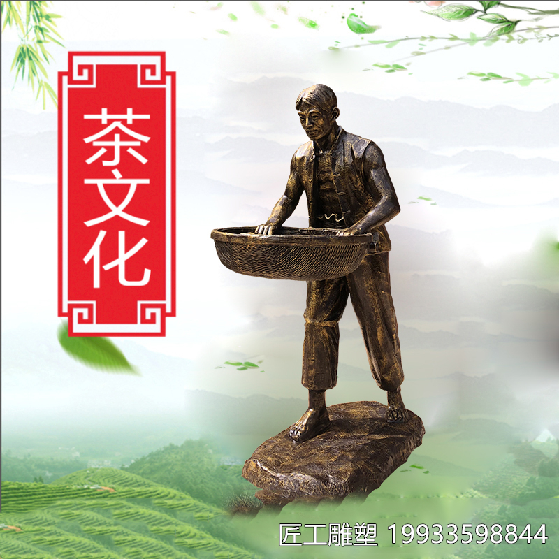 玻璃鋼仿銅茶文化人物雕塑是一種以世界各地的各種人物為造型的雕塑藝術(shù)。是指利用各種可雕刻的塑料材料或硬質(zhì)材料,創(chuàng)造出具有一定空間的視覺和觸覺的藝術(shù)形象。它反映了社會生活,表達(dá)了藝術(shù)家的審美感受、情感和理想。