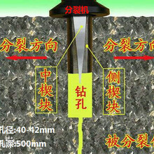 用劑。?????多少錢一套小劈裂機(jī),多少錢一套小劈裂機(jī)。工作時間短,是千斤頂從缸伸時間。在1分鐘之間方可達(dá)到巖石明顯效果。將液壓劈裂棒放入孔內(nèi),務(wù)必千斤頂全部放入。啟動電源,換動動換向閥至藍(lán)色管,開始進(jìn),千斤頂開始伸,在孔內(nèi)產(chǎn)生向臨空面方向推力,巖石表面現(xiàn)縫隙5-8公分。液壓表顯示液壓達(dá)到160mp時,液壓停止工作,處于保壓狀態(tài),意味著工作以完成