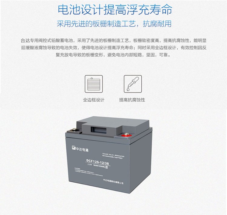 達(dá)電通蓄電池具有以下優(yōu)點(diǎn):命設(shè)計(jì):采用超厚板柵設(shè)計(jì),高出業(yè)內(nèi)平均水平30-40%,有效提高電池的性能,達(dá)到延長(zhǎng)蓄電池壽命的目的。安全性高:蓄電池密封進(jìn)行設(shè)計(jì),電池殼蓋密封采用安全性的膠封技術(shù),極柱密封采用雙重密封技術(shù),并采用預(yù)留正極板伸長(zhǎng)空間設(shè)計(jì),多重蓄電池?zé)o酸液、無(wú)酸霧逸出;另外蓄電池殼蓋采用ABS阻燃材料,安全性好。免、維護(hù)簡(jiǎn)單采用特殊閥控設(shè)計(jì) , 克服了電池在充電過(guò)程中電解失水的現(xiàn)象,電池在使用過(guò)程中電液體積和比重幾乎沒(méi)有變化,因此電池在使用壽命期間完全無(wú)需,維護(hù)簡(jiǎn)單。密封由于電池為貧液式設(shè)計(jì),內(nèi)部沒(méi)有流動(dòng)的電解液,無(wú)電液滲漏之患;而且電池采用殊的密封結(jié)構(gòu),在正常充電過(guò)程中電池不會(huì)產(chǎn)生酸霧。因此可將電池安裝在辦公室或配套設(shè)備房?jī)?nèi),而無(wú)需另建電池房,降低工程造價(jià)。高功率放電性能采用了內(nèi)阻值很小的極板設(shè)計(jì)和玻纖隔板,高強(qiáng)度壓緊裝配工藝,使得電池內(nèi)阻極小。在 -15 ~ 50℃溫度范圍內(nèi) , 可進(jìn)行 0.25C 的大電流放電,且產(chǎn)生的熱量很小,其輸出功率比常規(guī)電池可高出 15% 左右。自放電極小電池采用高純?cè)虾吞厥馀浞焦に?,組裝后電池內(nèi)阻很低,