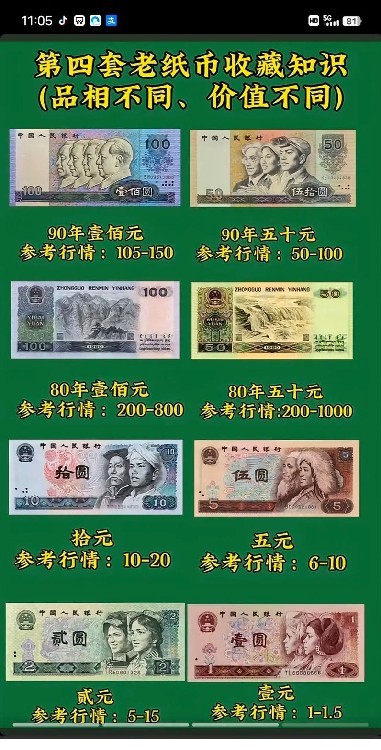 套人民幣在解放戰(zhàn)爭中誕生、發(fā)行。當(dāng)時(shí)戰(zhàn)爭急需用錢,而物資又極度匱乏,所以套人民幣面額很大,版別眾多,也沒有統(tǒng)一的印鈔紙張。套人民幣一共有12種面額,62種版別,堪稱人民幣收藏之。套人民幣中誕生了很多,比如一萬元牧馬圖、5000元蒙古包、500元瞻德城、一萬元駱駝隊(duì)。1955年3月1日,國家公布發(fā)行第二套人民幣,共10種面額,分別是1分、2分、5分、1角、2角、5角、1元、2元、3元和5元。1957年12月1日,又發(fā)行了10元紙幣。同時(shí),為便于流通,發(fā)布命令,自1957年12月1日起發(fā)行1分、2分、5分三種硬分幣,與紙分幣等值流通。第二套人民幣了分幣發(fā)行的先河,經(jīng)歷了中蘇關(guān)系的破裂,也誕生了許多幣種。第三套人民幣從1962年4月20日開始發(fā)行,直到1974年才發(fā)行完畢,2000年退出流通,是我國發(fā)行持續(xù)時(shí)間和流通時(shí)間長的一套人民幣。自然也誕生了很多。第四套人民幣從1987年開始發(fā)行,2018年退市,是我們大部分人小時(shí)候都花過的一套人民幣,群眾基礎(chǔ)非常好。四版幣中也誕生了很多很有收藏價(jià)值的紙幣。比如8050.