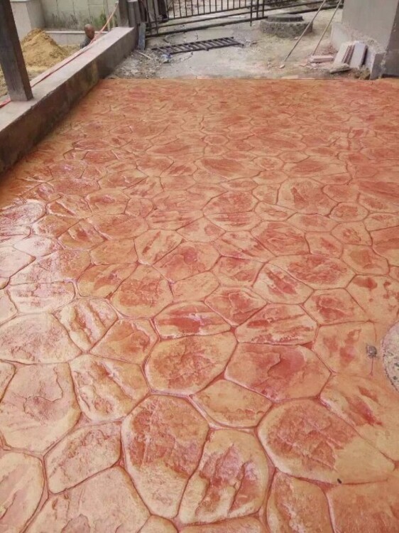 彩色壓花地坪是一種防水、防滑、防腐的綠色環(huán)保地面裝飾材料!是在未干的水泥地面上加上一層彩色強(qiáng)化料(起裝飾和強(qiáng)化混凝土作用)及著色脫模粉(起二次著色和脫模作用), 然后用的模具在水泥地面上壓印而成。景琪彩色藝術(shù)裝飾混凝土能使水泥地面呈現(xiàn)各種色澤、圖案和質(zhì)感,逼真地模擬自然的材質(zhì)和紋理,隨心所欲地勾劃各類圖案,而且愈久彌新,使人們輕松地實(shí)現(xiàn)建筑物與人文環(huán)境,自然環(huán)境和諧相處,融為一體的理想。