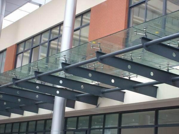 鋼結(jié)構(gòu)玻璃雨棚的頂部采用鋼化玻璃或夾膠安全玻璃,具有安裝方便、通透性強(qiáng)的特性。而防水性鋼結(jié)構(gòu)玻璃雨棚采用鋼化夾膠玻璃和鋼結(jié)構(gòu)制作完成的
