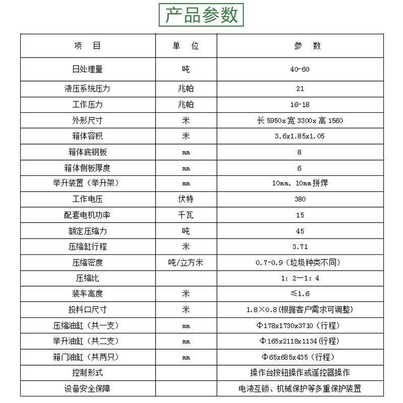 河南德隆重工科技有限公司主營:垃圾場中轉(zhuǎn)設(shè)備,垃圾壓縮機,垃圾壓縮中轉(zhuǎn)站垃圾壓縮箱垃圾處理壓縮設(shè)備,垃圾壓縮機,提供水平式垃圾壓縮設(shè)備地埋6立方垃圾壓縮箱日處理量60噸垃圾設(shè)備,公司一直堅持以人為本、誠信立業(yè)的理念,為客戶提供優(yōu)質(zhì)的水平式垃圾壓縮設(shè)備地埋6立方垃圾壓縮箱日處理量60噸垃圾設(shè)備服務(wù),由于產(chǎn)品規(guī)格不同,價格也有所不同,如有需求請與我電話溝通,以免給您造成不必要的損失。