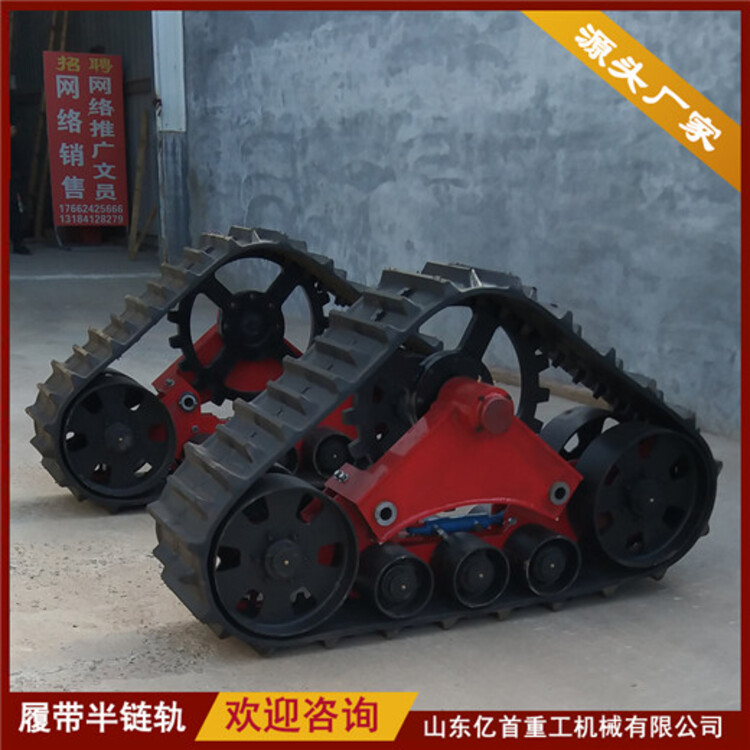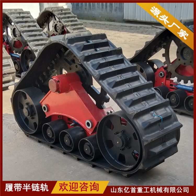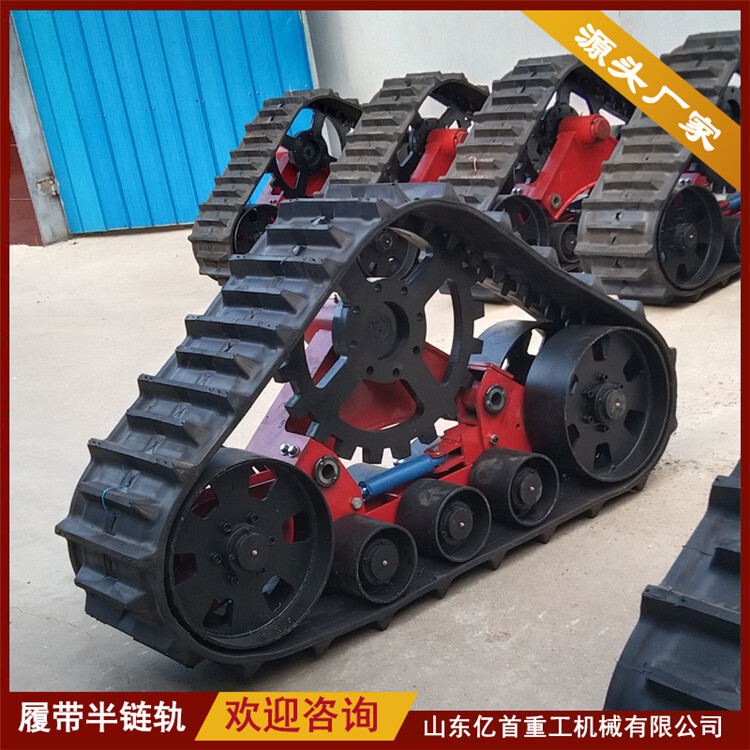 橡膠履帶半鏈軌所述車輪外套有防滑輪,防滑輪通過鎖緊扣與車輪固定連接,所述鎖緊扣設(shè)有若干個且均勻分布在防滑輪的內(nèi)圈上,所述防滑輪外圈上設(shè)有輪齒,所述履帶上設(shè)有與輪齒配合的通孔