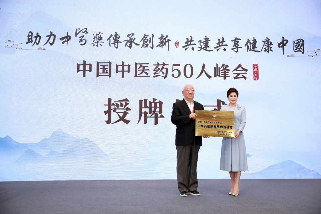 衛(wèi)生部原副部長、國家中醫(yī)藥管理局原局長朱慶生為安利中國總裁余放授牌