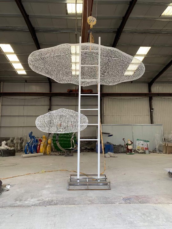 不銹鋼(玻璃鋼)與鏤空云朵的搭配確實(shí)營造了一種輕盈、協(xié)調(diào)、唯美的視覺享受,讓人們在快節(jié)奏的生活中找到了片刻的寧靜與放松。這種云朵造型雕塑,尤其是采用不銹鋼絲編織的云朵雕塑,以其特的工藝和造型,為城市景觀增添了一份別樣的風(fēng)情。在一些地產(chǎn)項(xiàng)目中,這些云朵雕塑成為了不可或缺的裝飾元素。它們不僅為建筑增添了美感,還營造了一種夢幻般的氛圍,使人們在欣賞的同時(shí),感受到了一種心靈的愉悅和放松。此外,將云朵雕塑與抽象人物結(jié)合的設(shè)計(jì)更是巧妙,形成了一個(gè)個(gè)有趣生動的情景小品。這種設(shè)計(jì)不僅豐富了雕塑的表現(xiàn)形式,還使得雕塑更具故事性和互動性,吸引了更多人的關(guān)注和喜愛??偟膩碚f,不銹鋼(玻璃鋼)與鏤空云朵的搭配,為城市景觀建設(shè)帶來了無限的可能性。這種設(shè)計(jì)不僅美觀大方,而且富有創(chuàng)意和想象力,讓人們在欣賞的同時(shí),也能夠感受到一種藝術(shù)的魅力和文化的底蘊(yùn)。