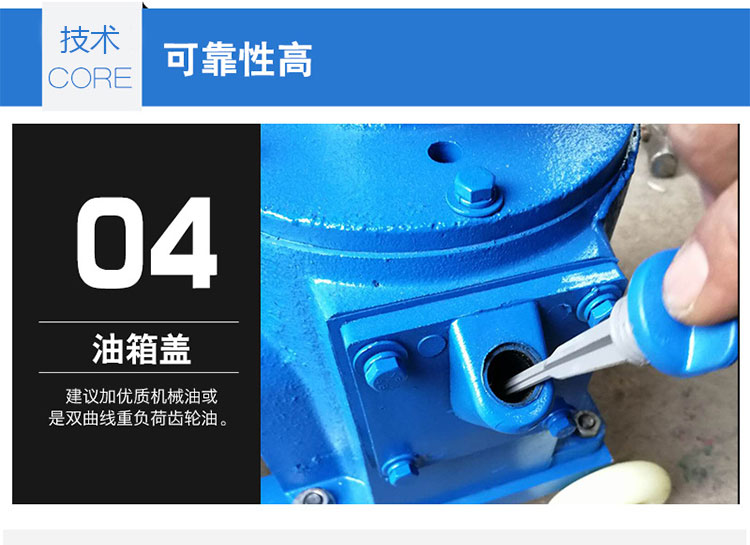 4、減速箱:采用蝸輪傳動,速比為1:30,箱內(nèi)可儲機沒,齒桿、齒輪和蝸輪付潤滑良好及無噪音,蝸輪外端,裝有偏心桿帶動齒桿作往復(fù)運動,與齒桿嚙合的齒輪軸即作倒順回轉(zhuǎn)運動。