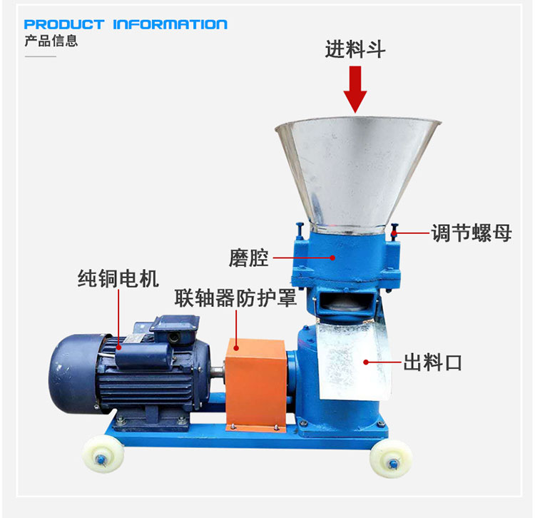 牧草擠壓成養(yǎng)殖飼料顆粒機 魚餌鳥類養(yǎng)殖飼料顆粒機廠家鄭州崇正機械生產(chǎn)的飼料顆粒機構(gòu)造如下: