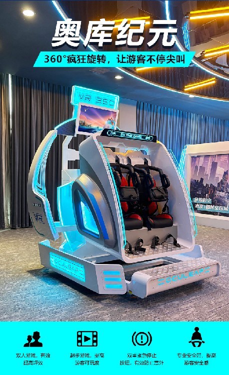 奧庫紀元(VR360) VR 旋轉體驗設備 —— 以 “360° 瘋狂旋轉,尖叫不斷” 為核心特色,將刺激物理旋轉與沉浸式 VR 體驗結合,為游客帶來雙重感官刺激,同時助力運營方吸引客流、提升營收。